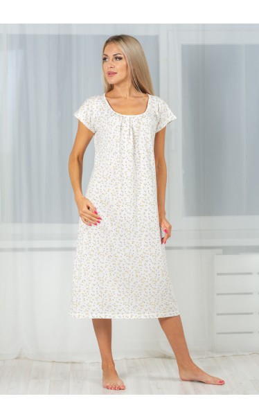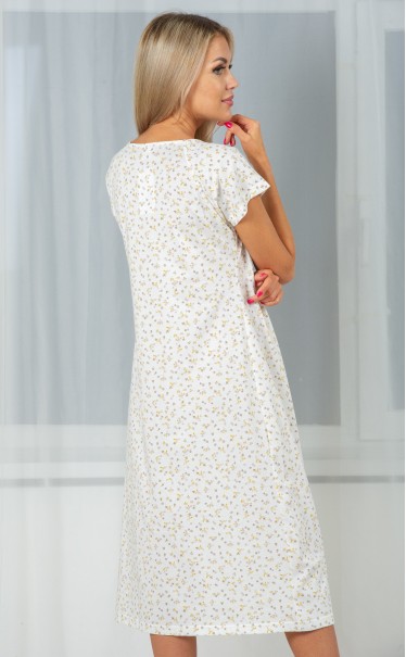 Ночная сорочка "мелкие серо-желтые цветочки на белом"