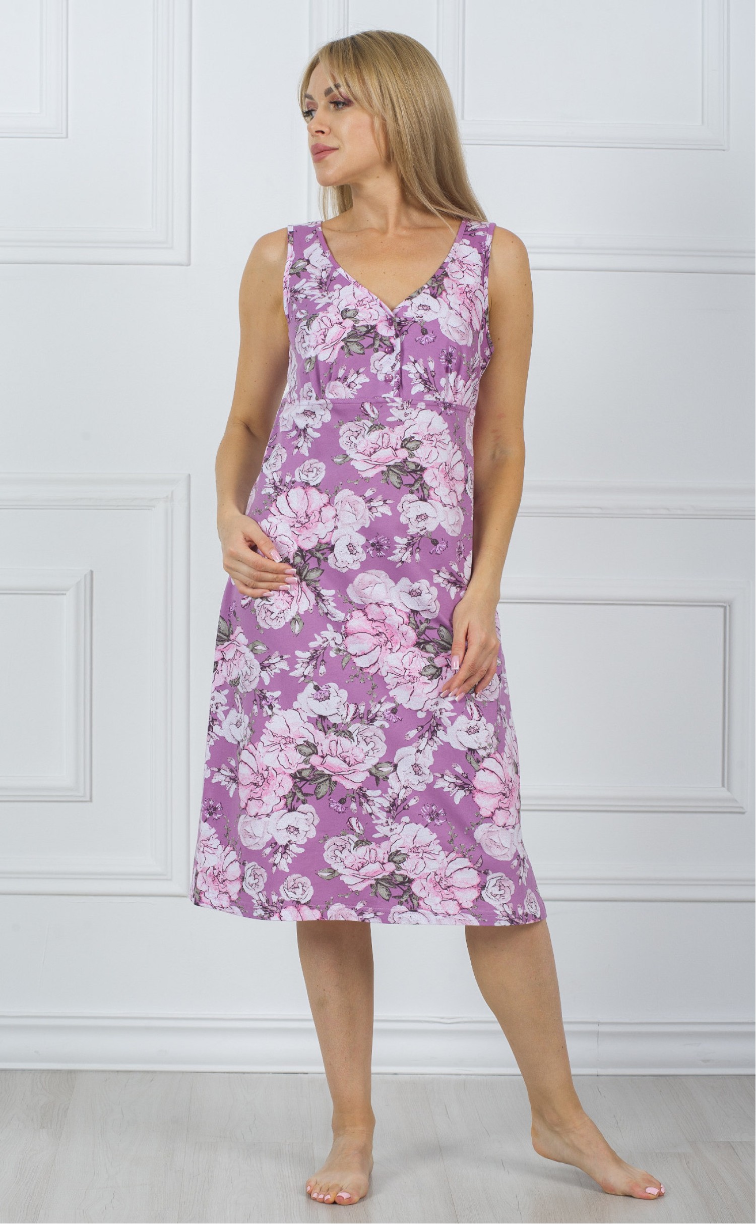 Ночная сорочка "Крупные цветы на фоне страя роза"