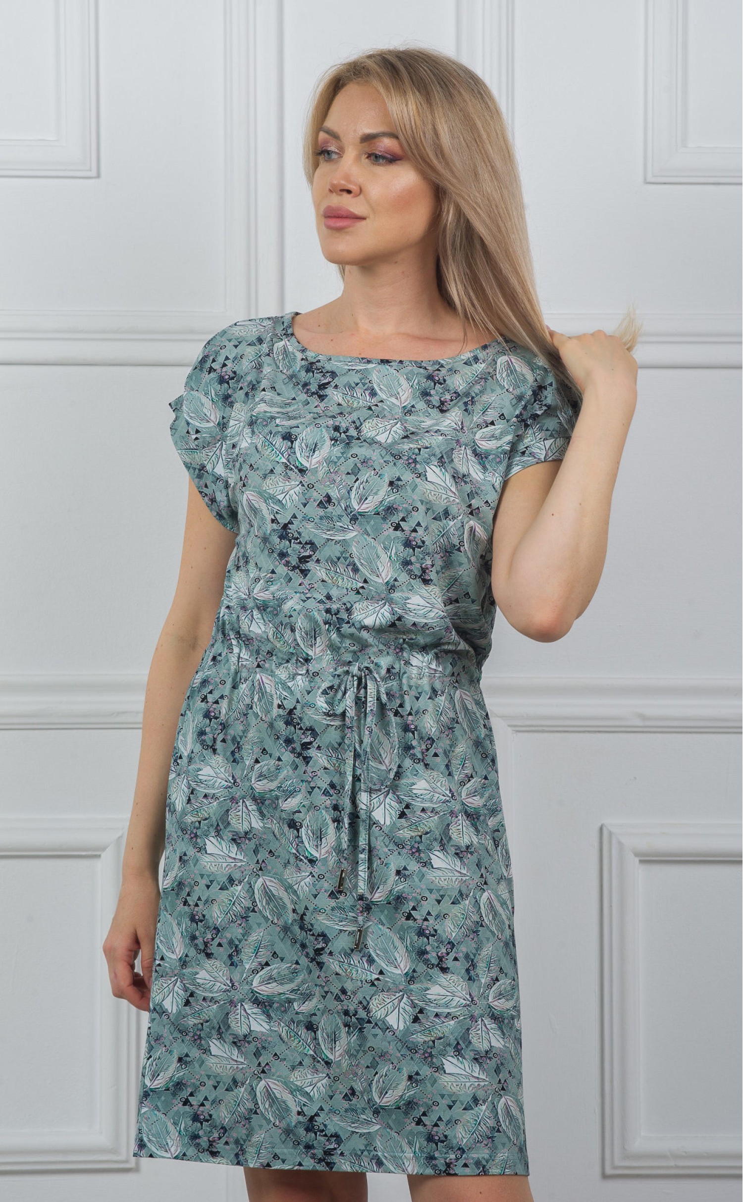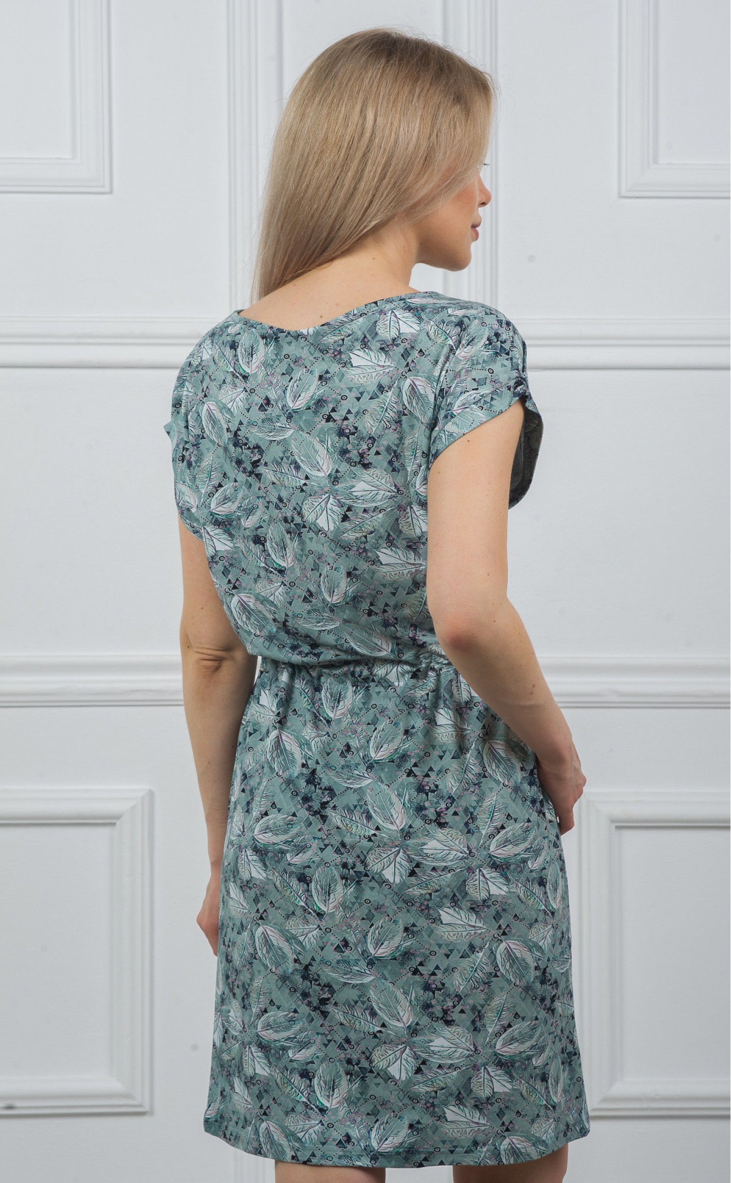 Туника "Листья серебристые на геометрии"