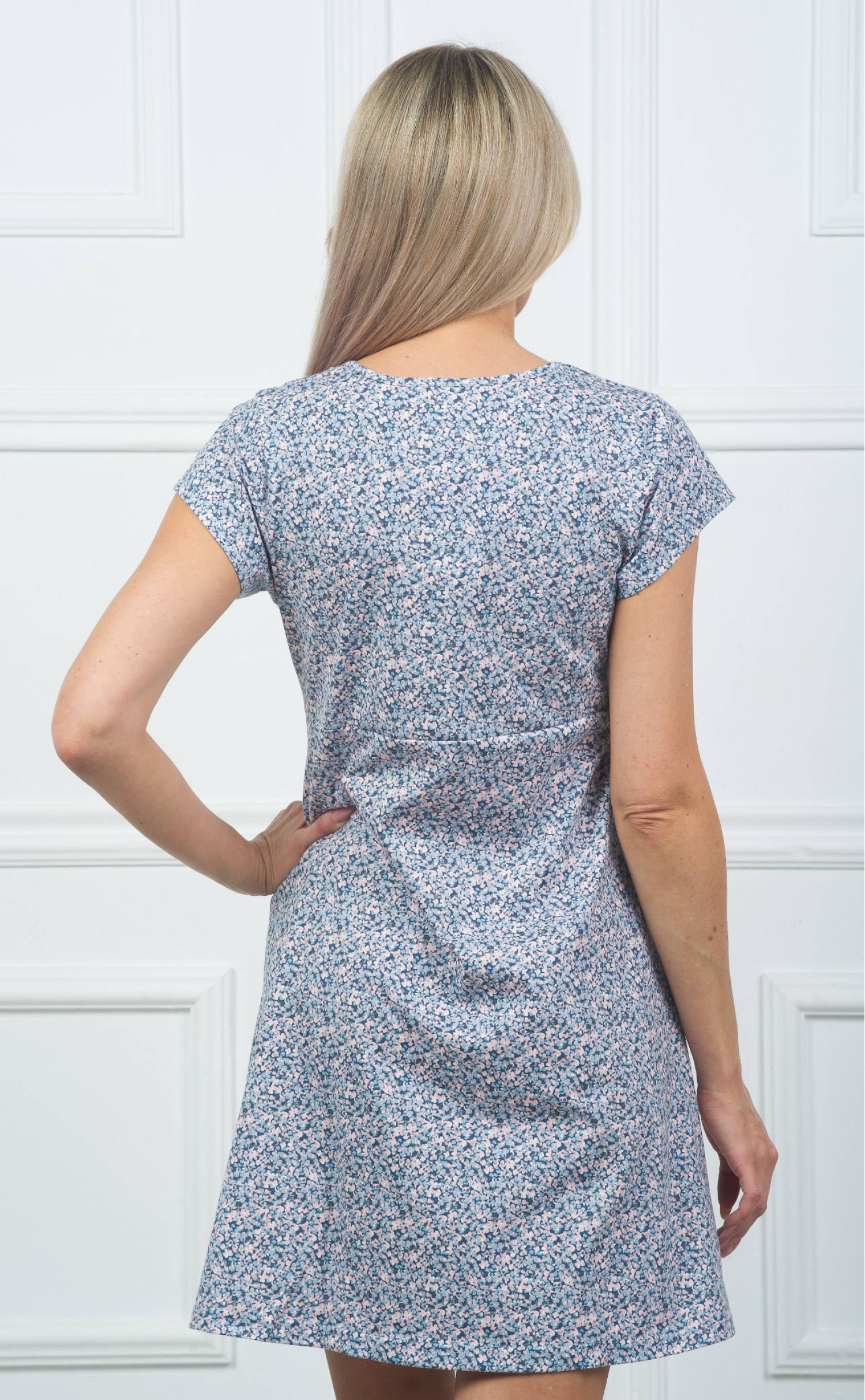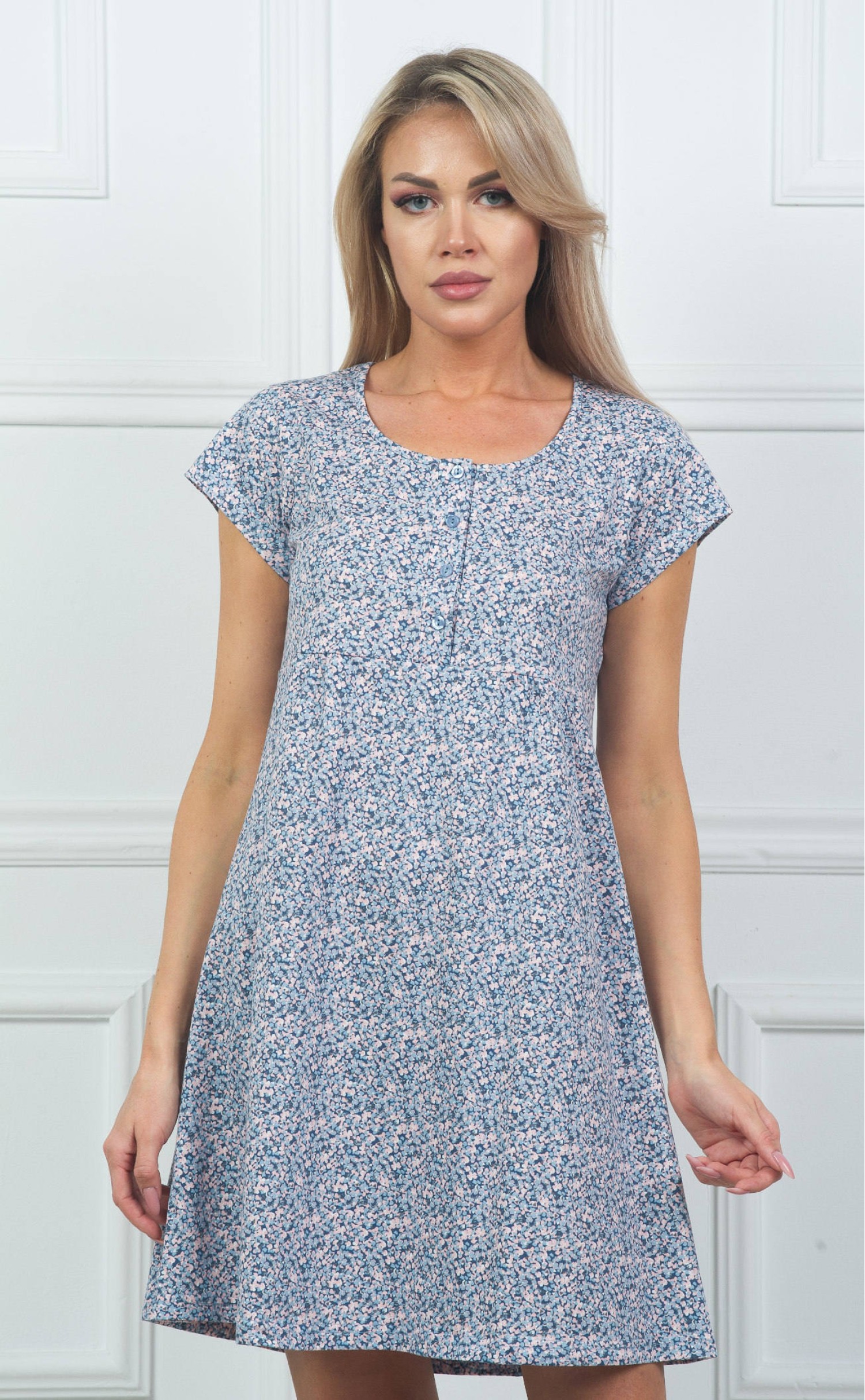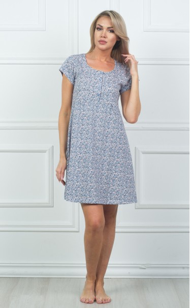 Ночная сорочка "Мелкие синие и розовые цветочки фоном"