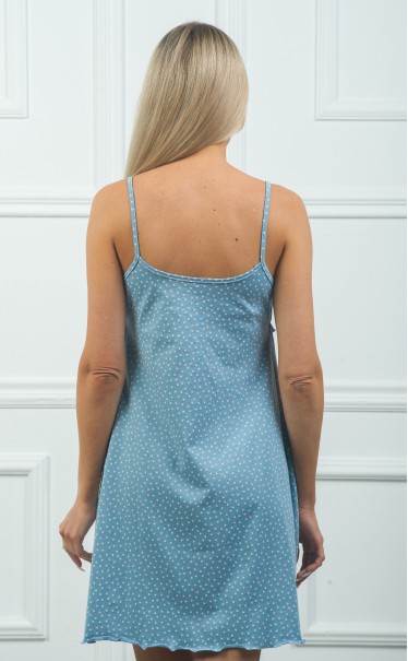 Ночная сорочка "Горошек розовый белый на синем"