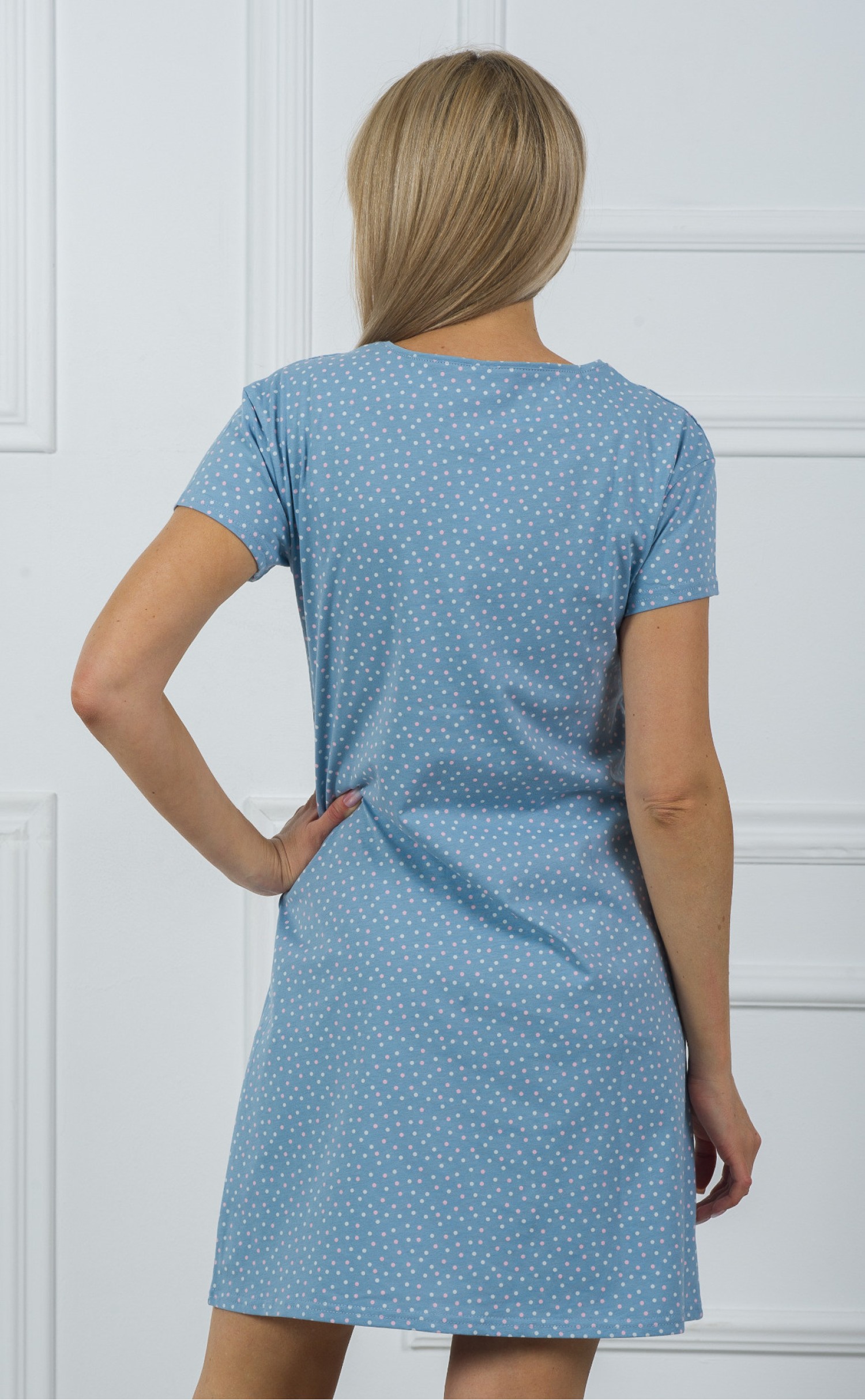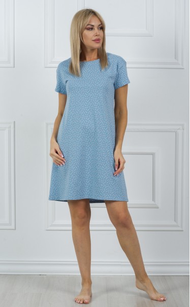 Ночная сорочка "Горошек розовый белый на синем"