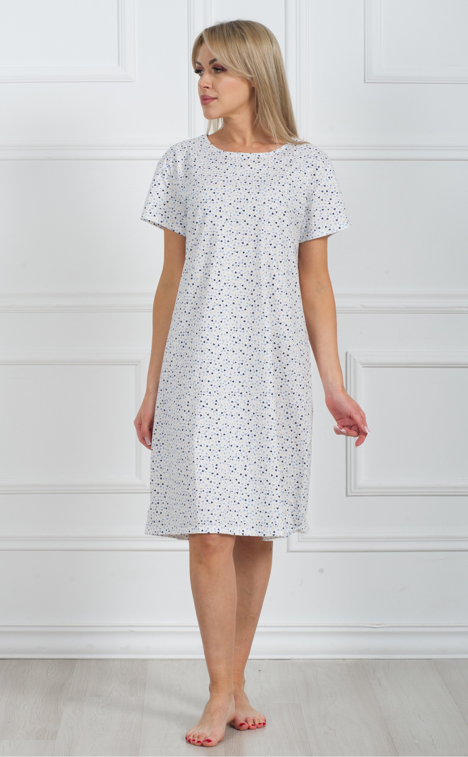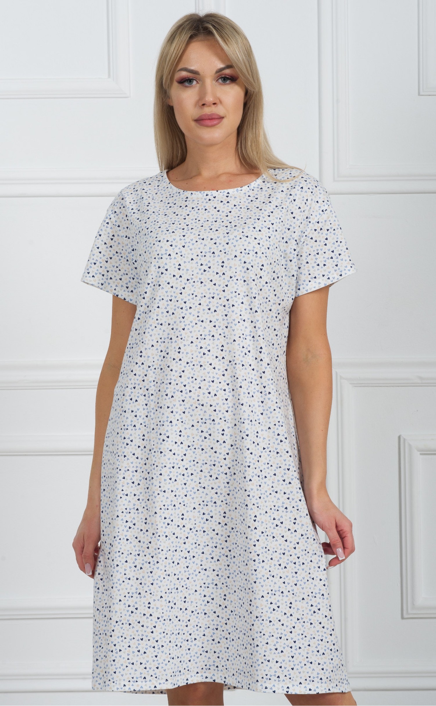 Ночная сорочка "Сердечки в синеву на белом"