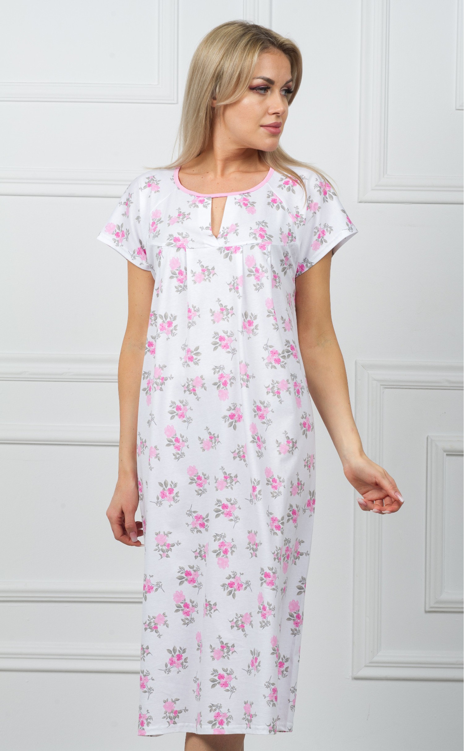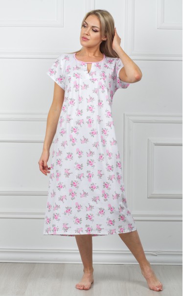 Ночная сорочка "Розовые цветы на ветках на снегу"