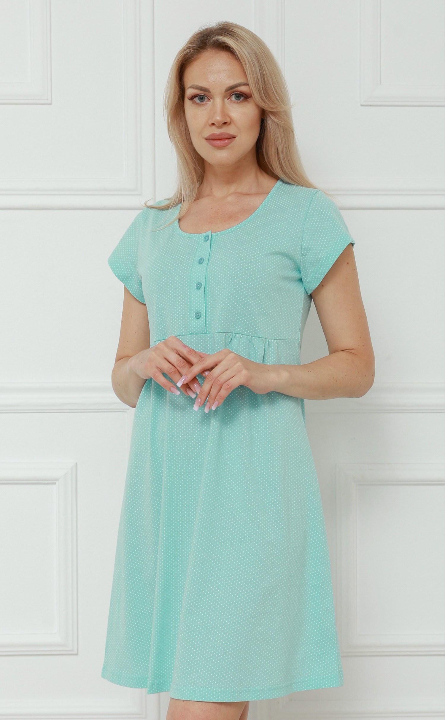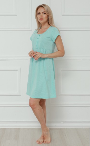 Ночная сорочка "Горошек (точки) белый на бирюзе"