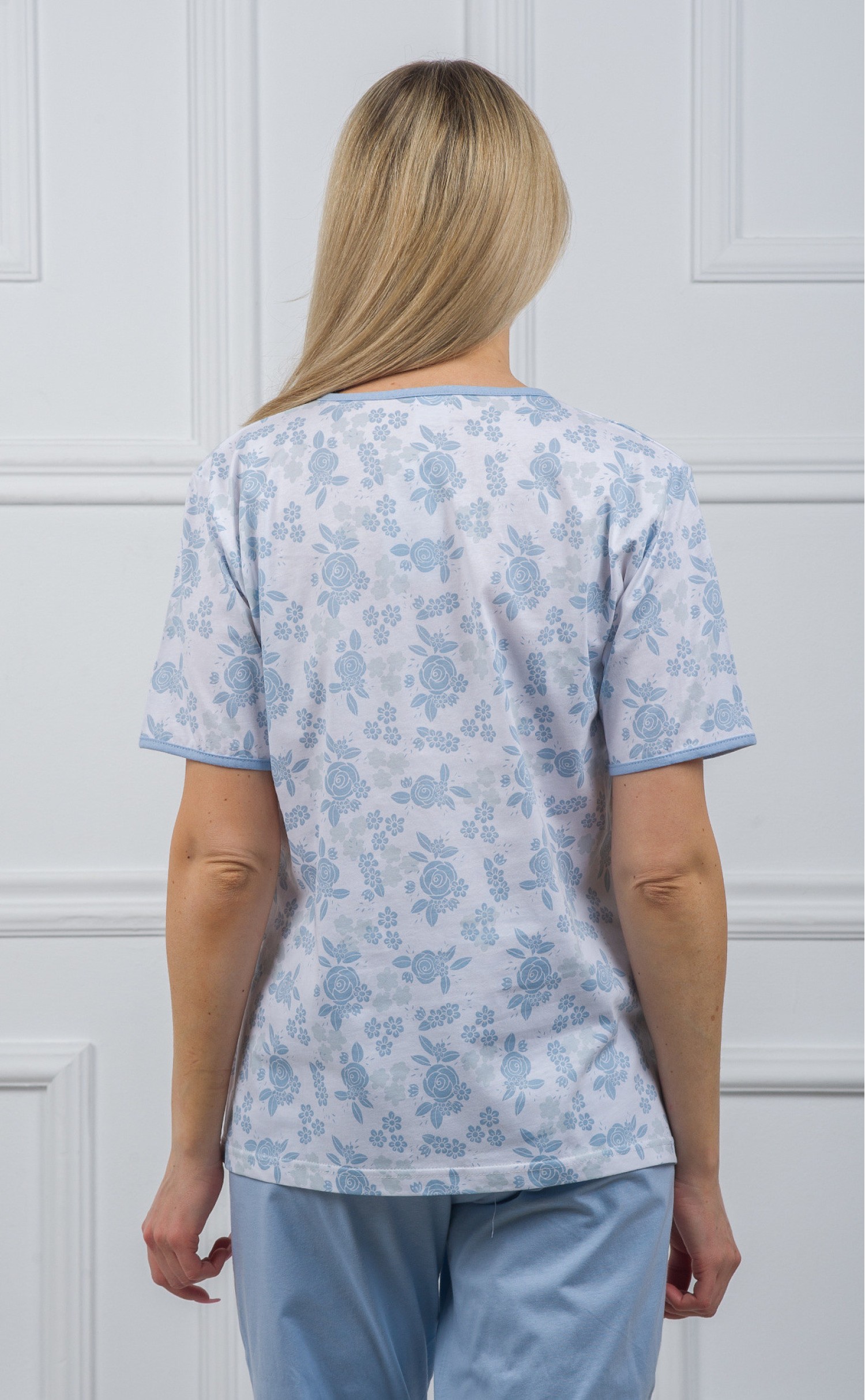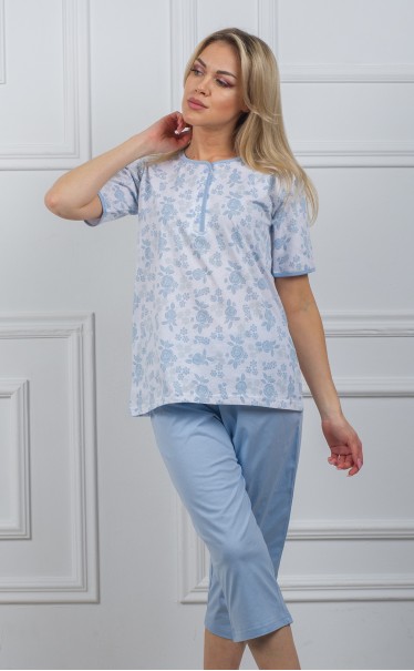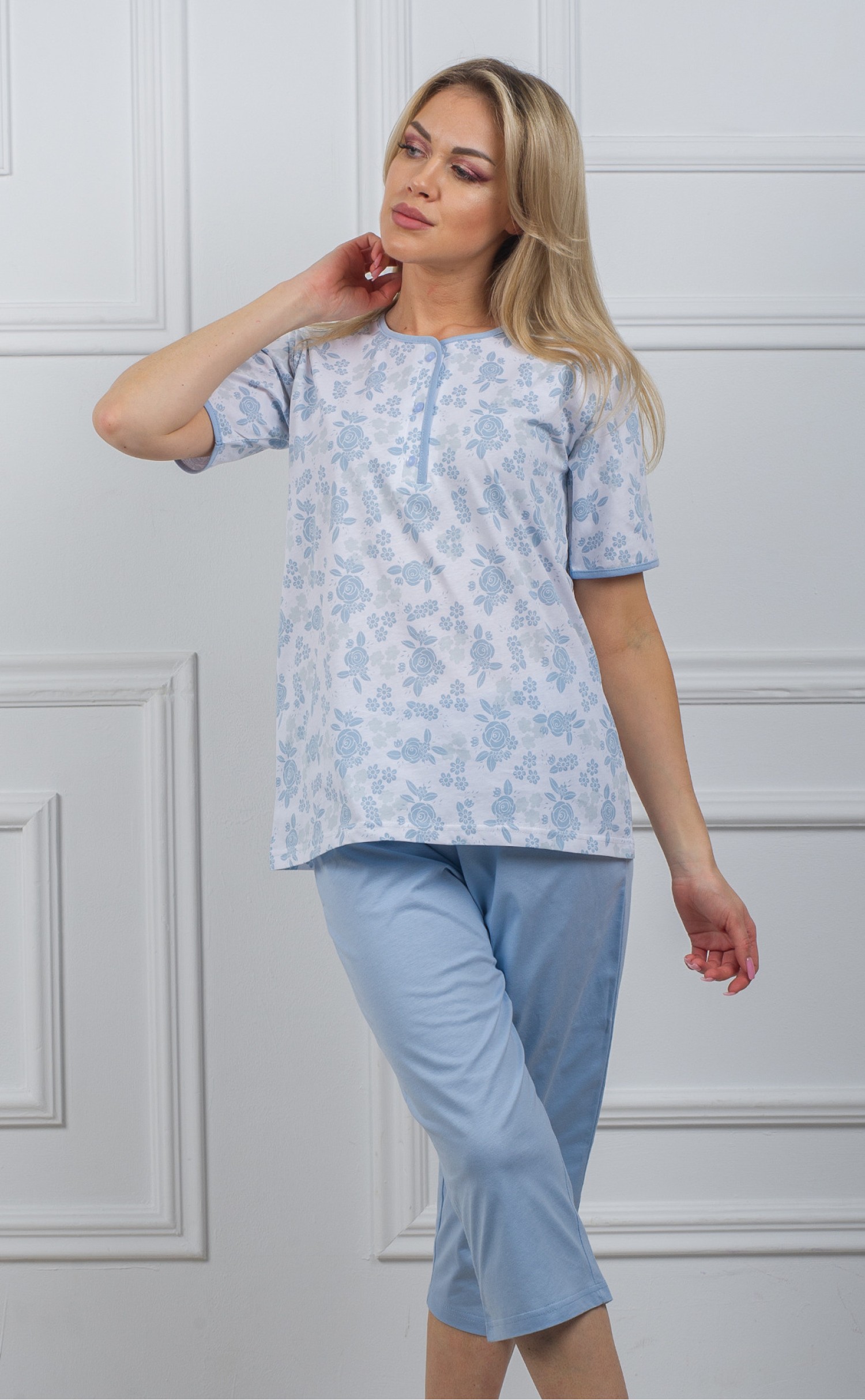 Комплект футболка с бриджами "Штамп, голубые розы на белом"