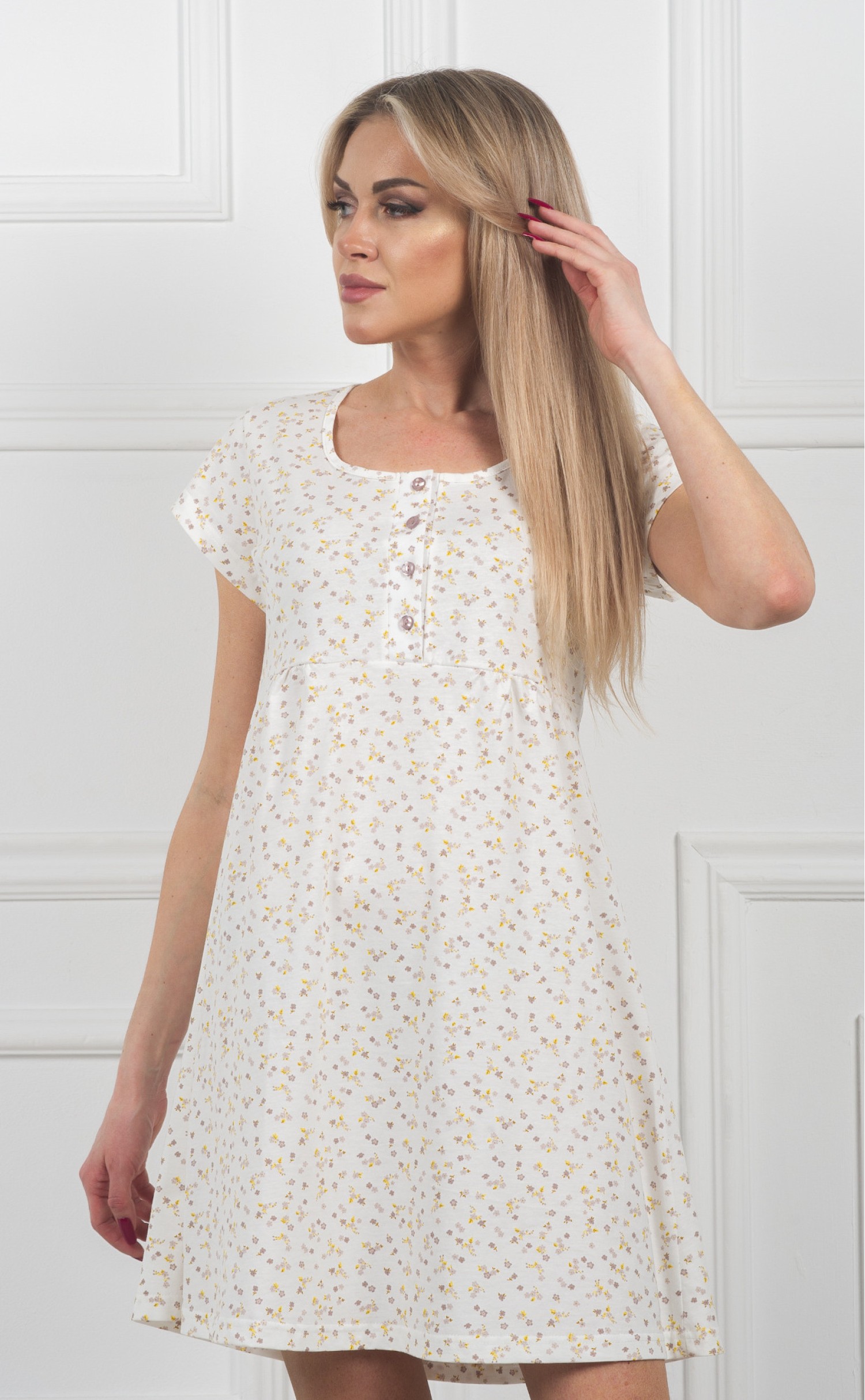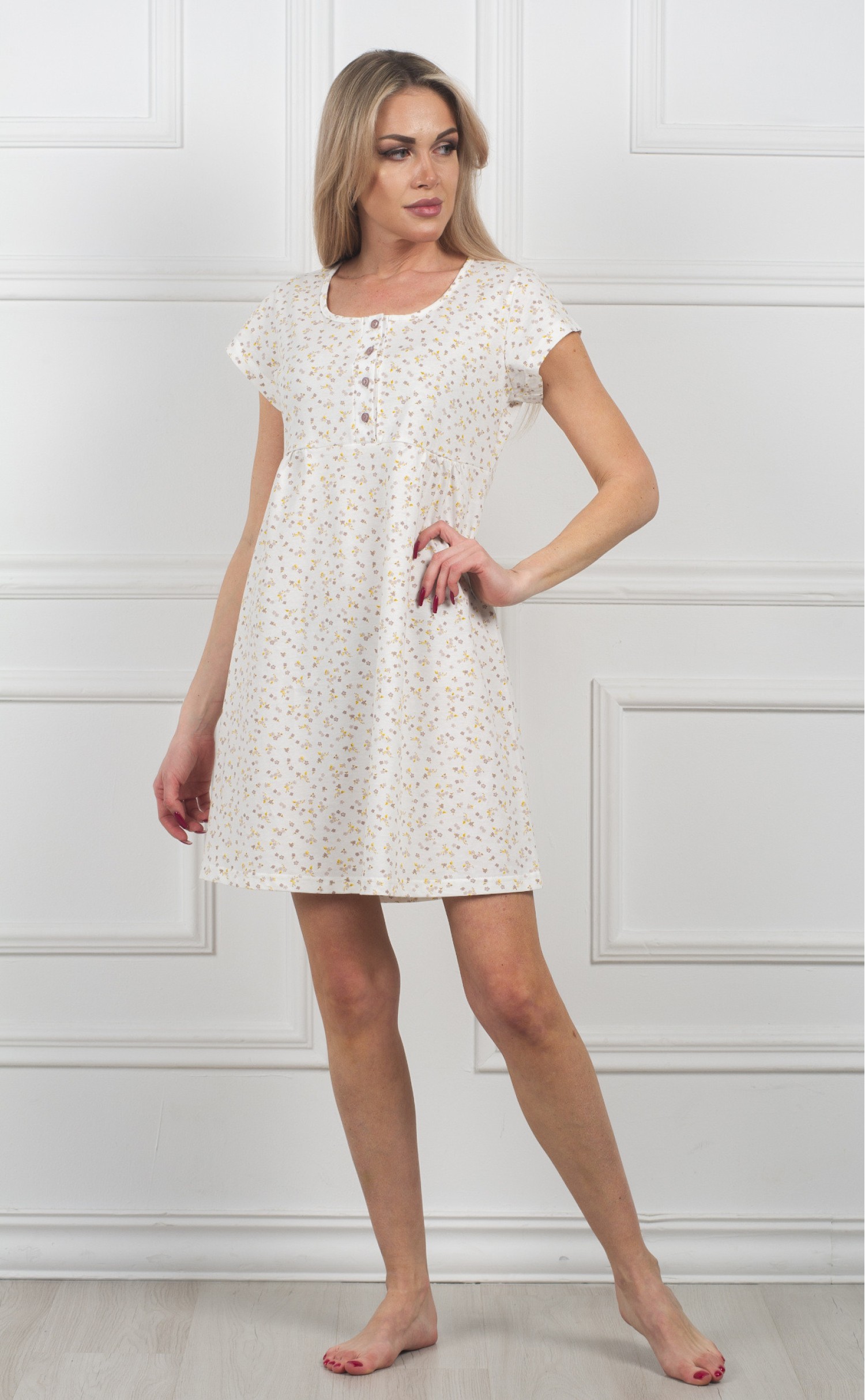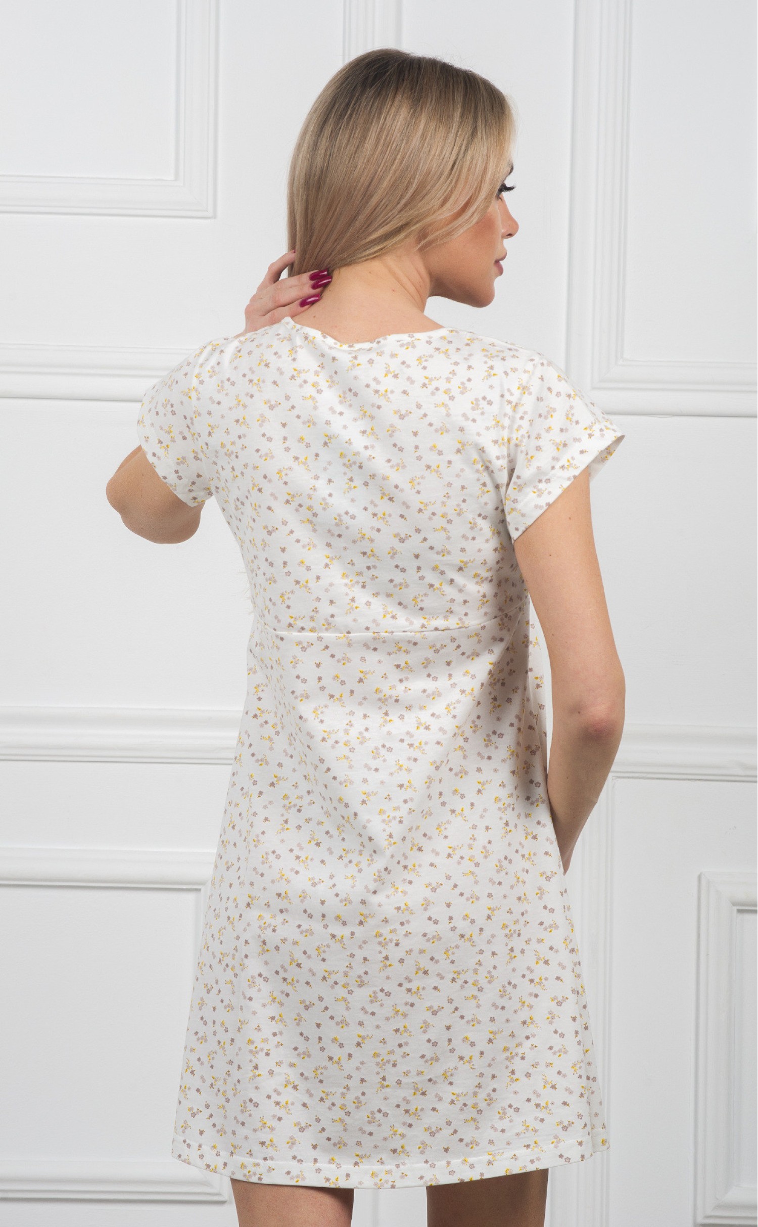 Ночная сорочка "Мелкие серо-желтые цветочки на белом"