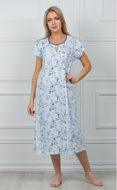 Ночная сорочка "Большие голубые цветы на снегу"