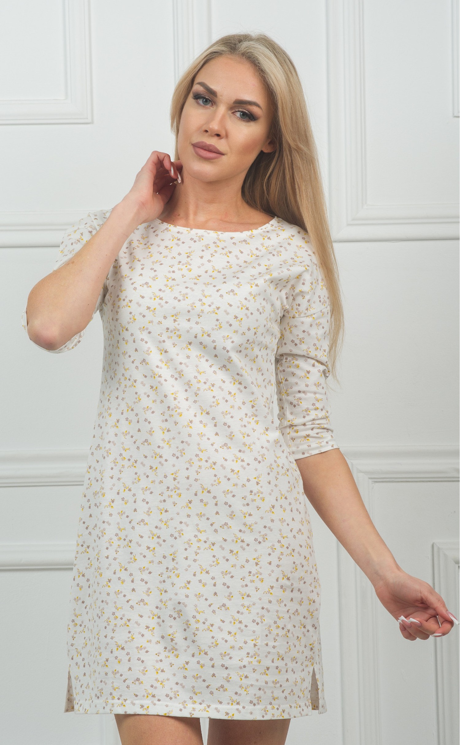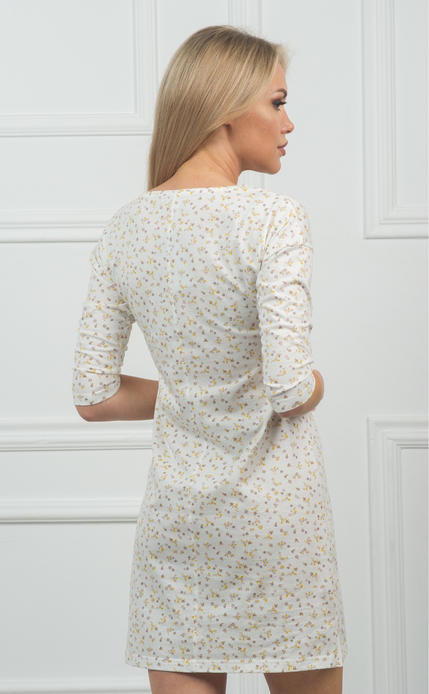 Ночная сорочка "Мелкие серо-желтые цветочки на белом"