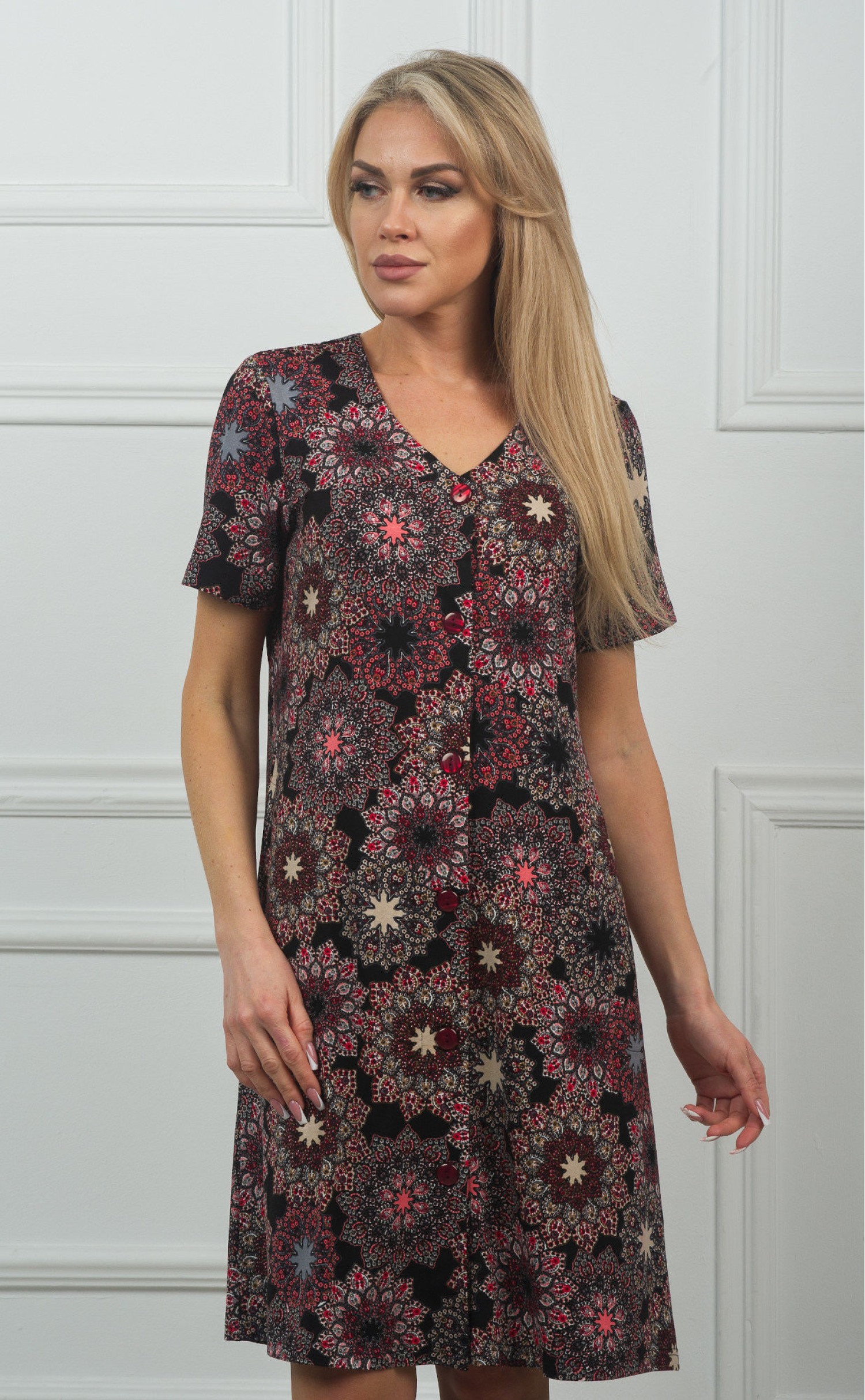 Халат "гранатовые броши на черном"